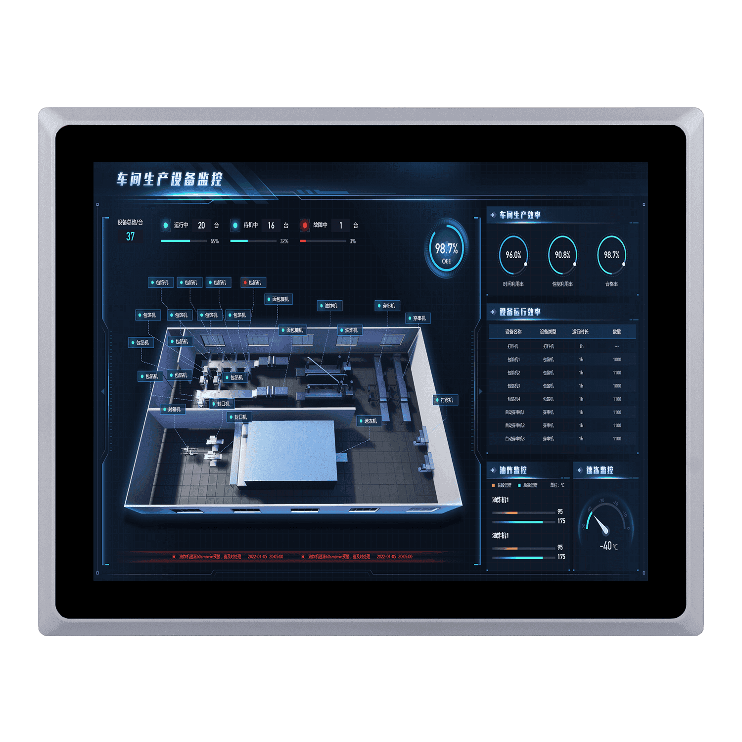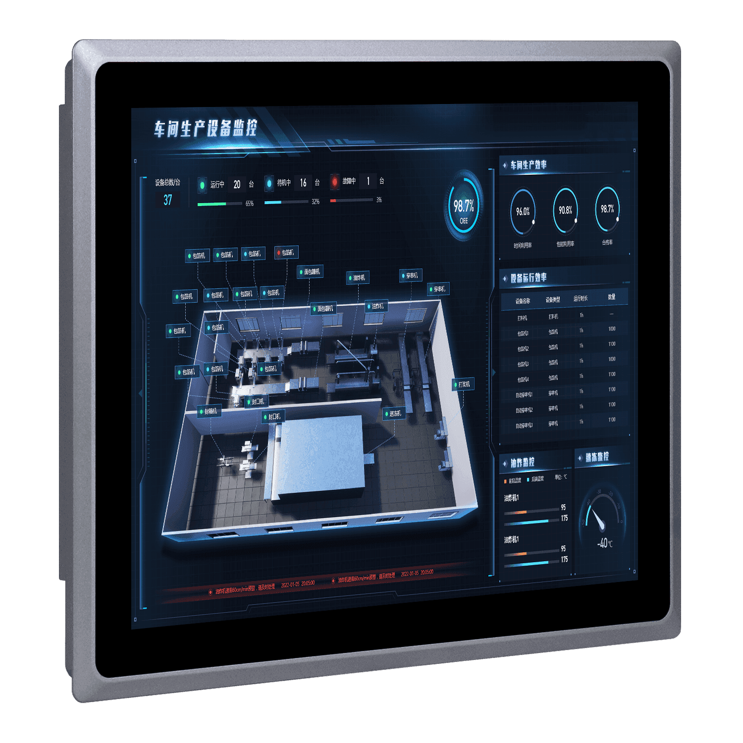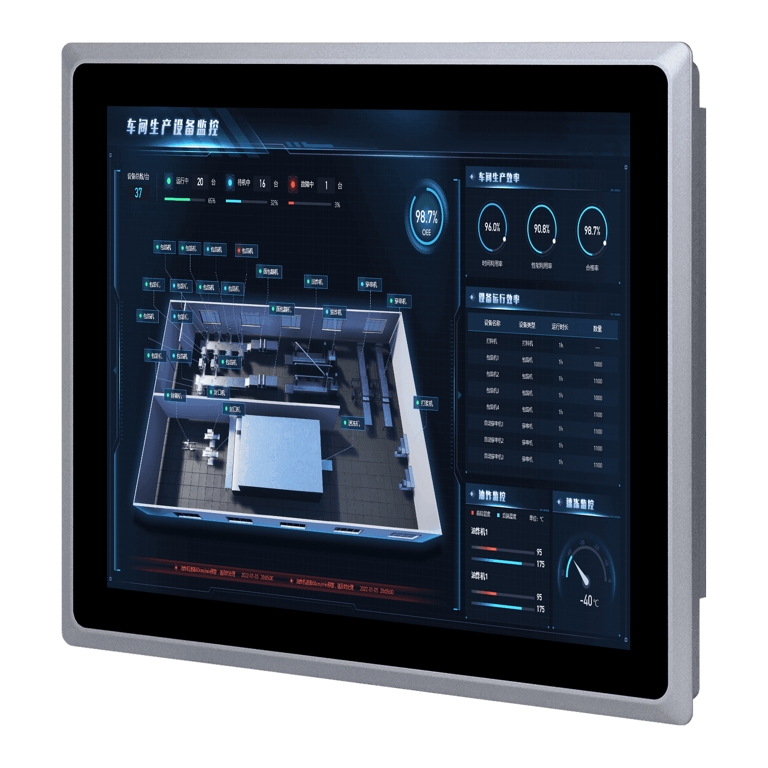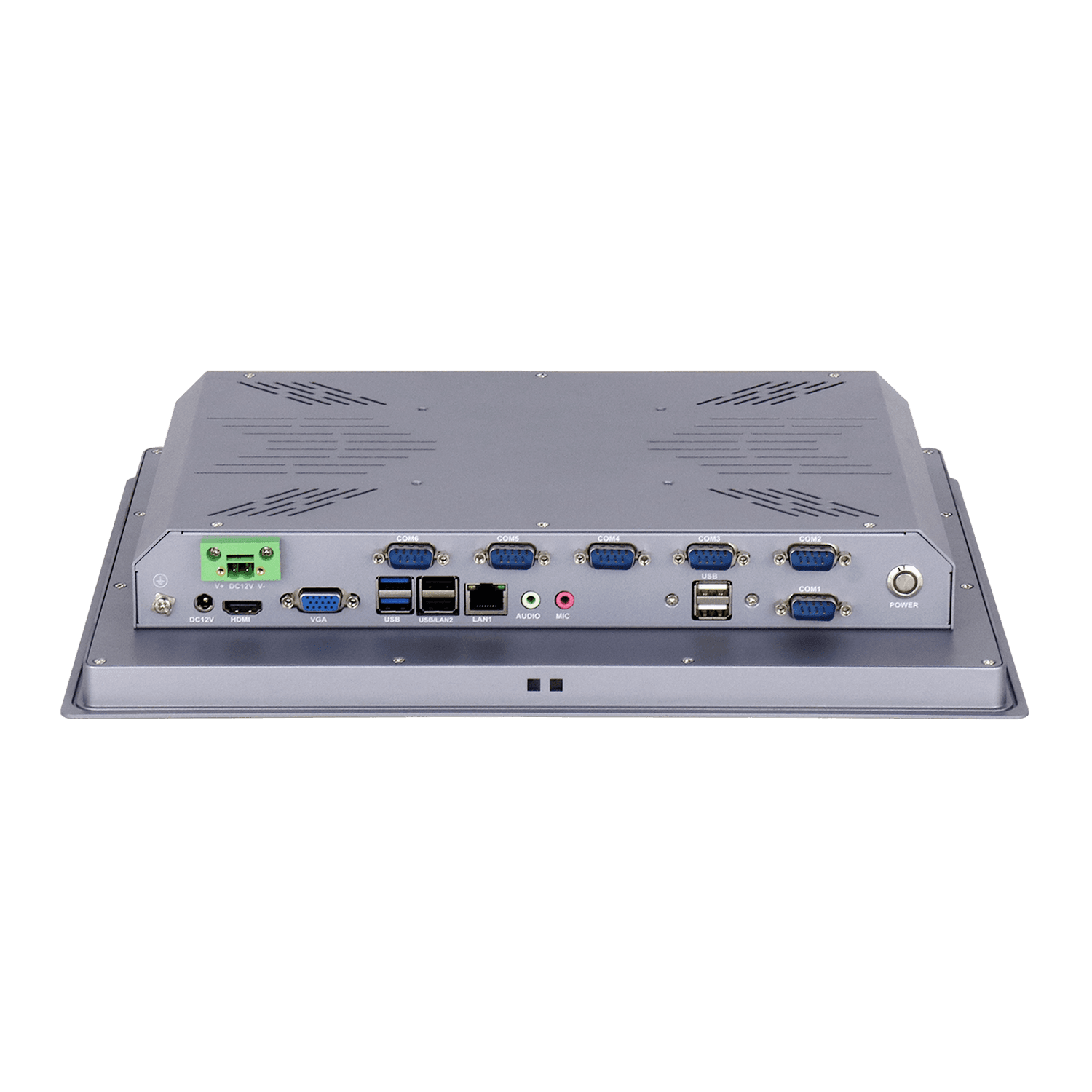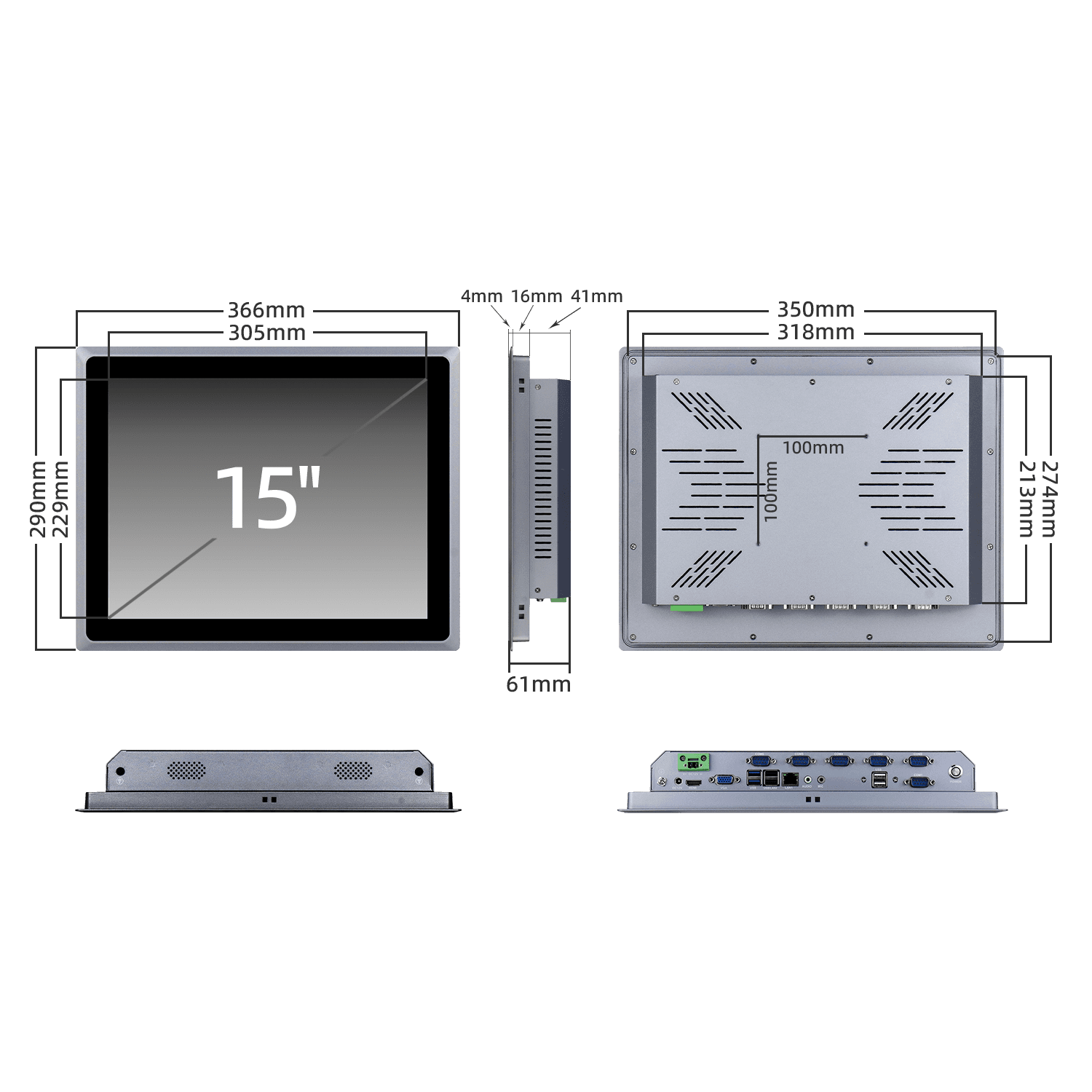 它支持宽温环境(-10至50°C),且流线型的设计,保证其高效散热和强固防震性,使其成为可靠的工业平台,提供安全接地部件更有效保护设备。屏幕采用15英寸LED背光工业屏,铝合金前面板符合IP65防水标准,可选全平面电容触摸屏或电阻触摸屏。