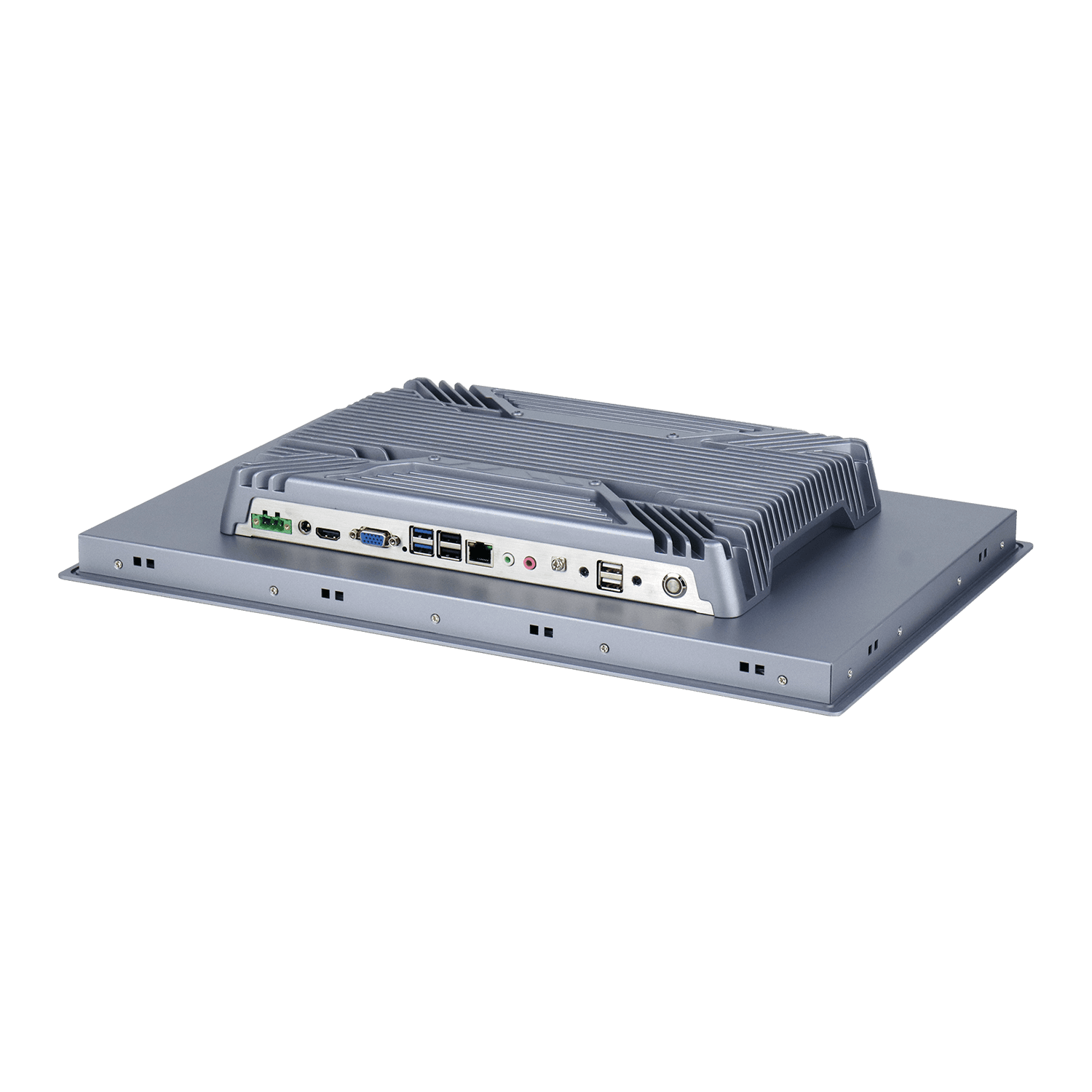 电阻 触控 宽屏 工业平板电脑 支持宽温环境(-20°C至60°C),全封闭铝鳍无风扇的设计,保障更高效散热和强固防振性,使其成为更可靠的工业平台,提供安全接地部件更有效保护设备。屏幕18.5英寸LED背光工业屏,铝合金前面板符合IP65防水标准,可选全平面电容触摸屏或电阻触摸屏。